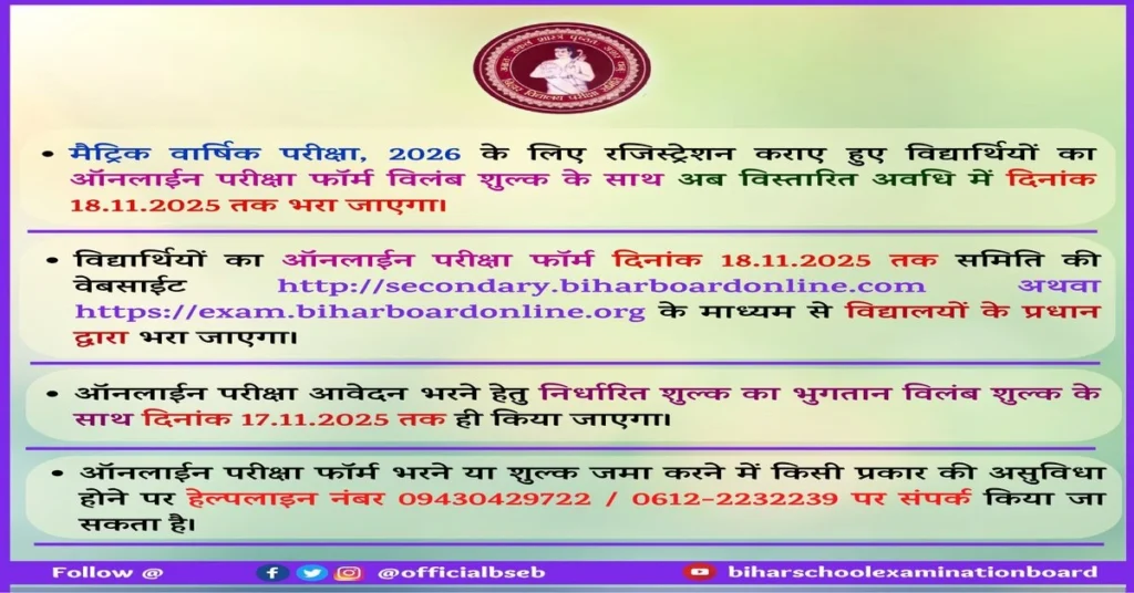 ऑफिशियल वेबसाइट BSEB पर जाकर “Latest Updates” सेक्शन में जाएं और वहाँ ‘Exam Schedule 2026 PDF डाउनलोड कर पाएंगे।